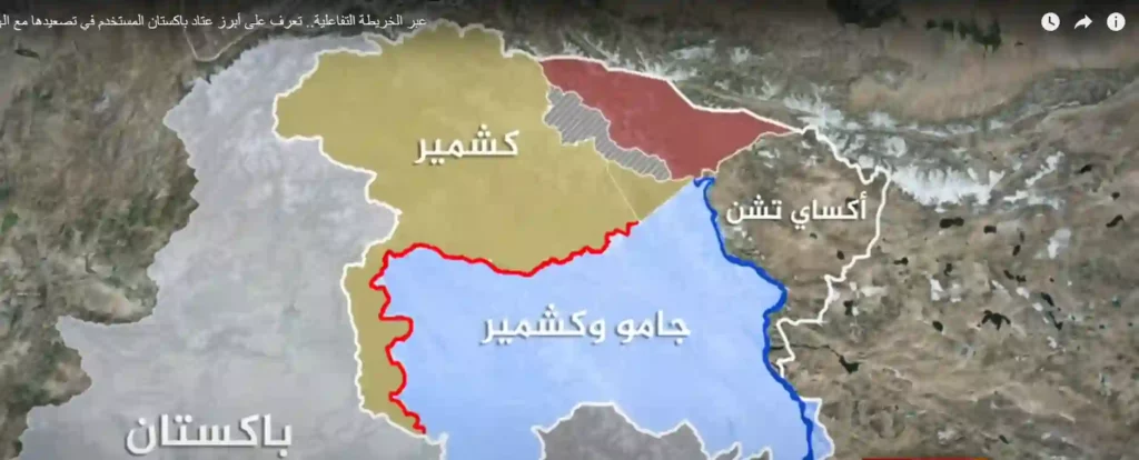 At the heart of this geopolitical conflict is the region of Jammu and Kashmir, the disputed region between India, Pakistan and China. The red line on the map represents the boundaries between the Pakistani part and the Indian part of Kashmir, while China maintains its control over a strategic point in the same region. To the East, another border dispute appears between India and China in the Axay Chen region, directly adjacent to the Indian Kashmir. This Chinese presence is not limited to the ground, but extends to the qualitative military support of Pakistan, as part of a strategic message that Beijing is able to compete with Western armament domination.