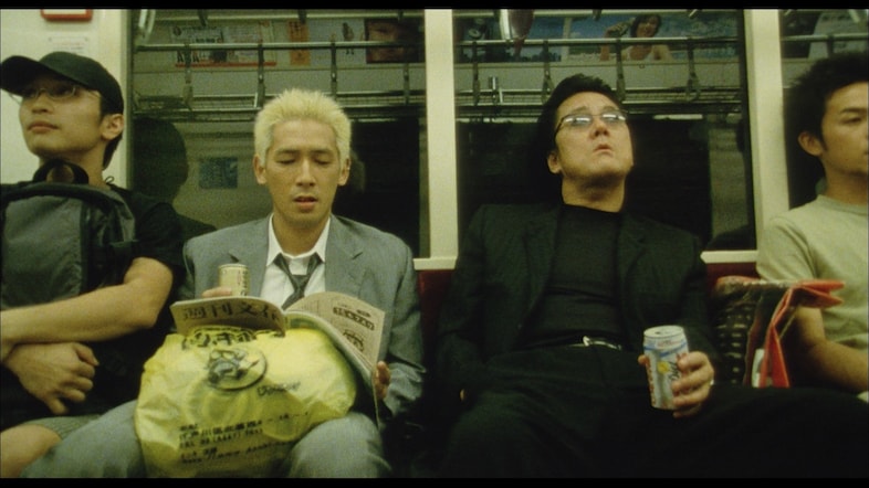 Agitator depicts a turbulent world of cigars, double-breasted suits and stretch limos, where gang leaders sip wine and smoke cigars in fancy cars before a peroxide-haired loose cannon (played by Miike himself) kicks off a chain of events that leads to all-out war. “It was basically all shot guerrilla style. The police didn’t give [us] permission for any of it,” he tells Radiance Films. “If we wrecked a car, we’d just rent another one. But if the actor got arrested, we couldn’t shoot the next day.”